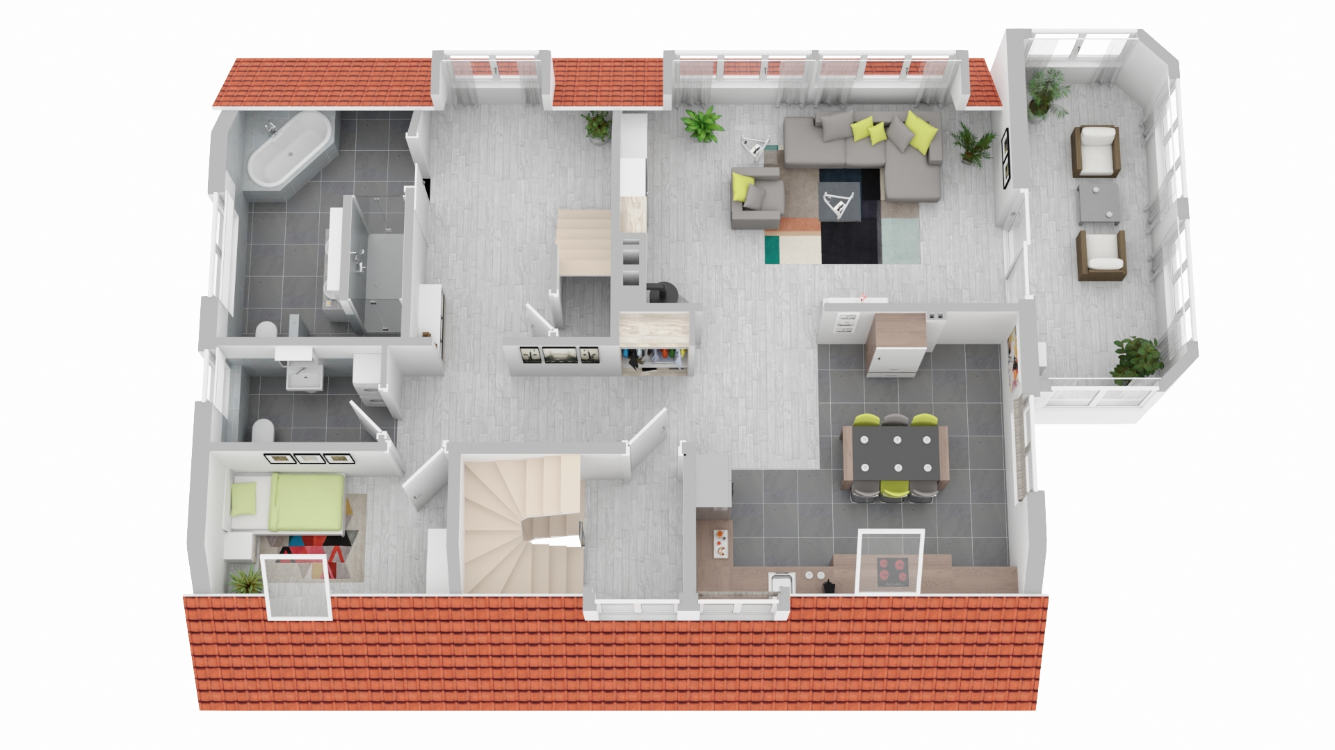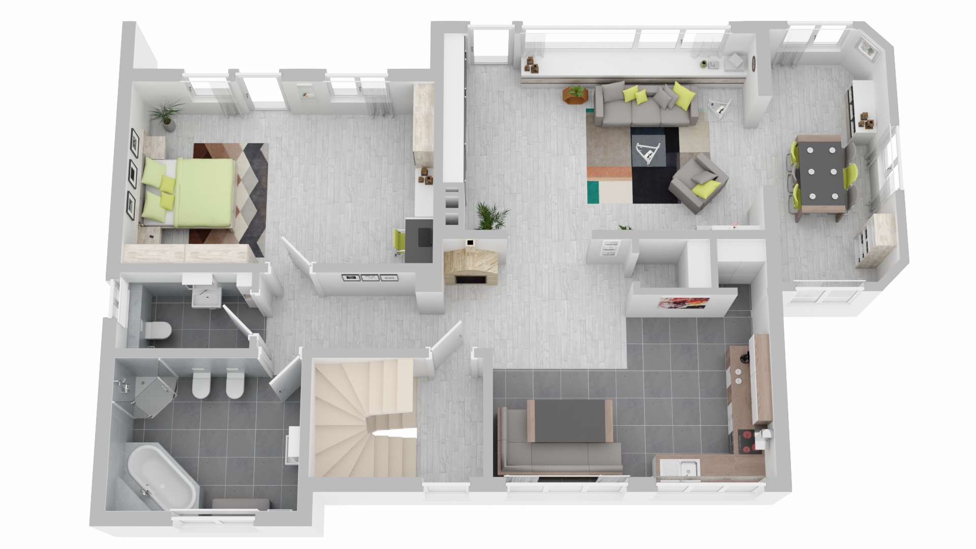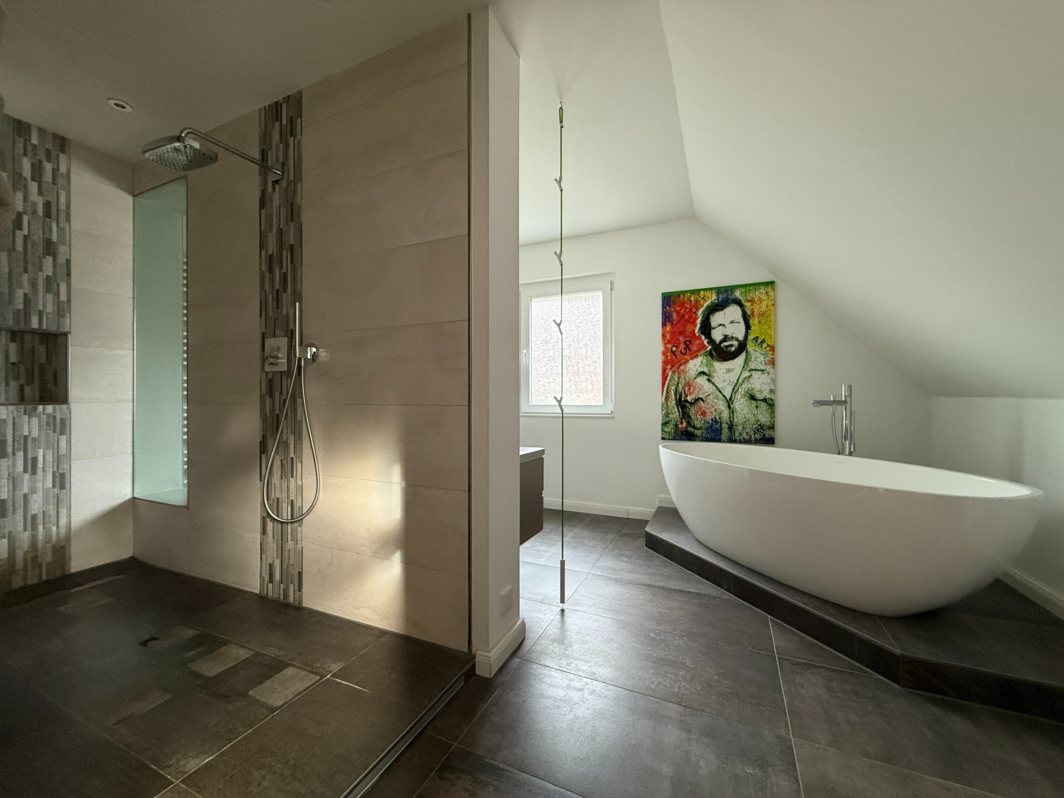 große Tageslichtbäder mit Badewanne und Dusche