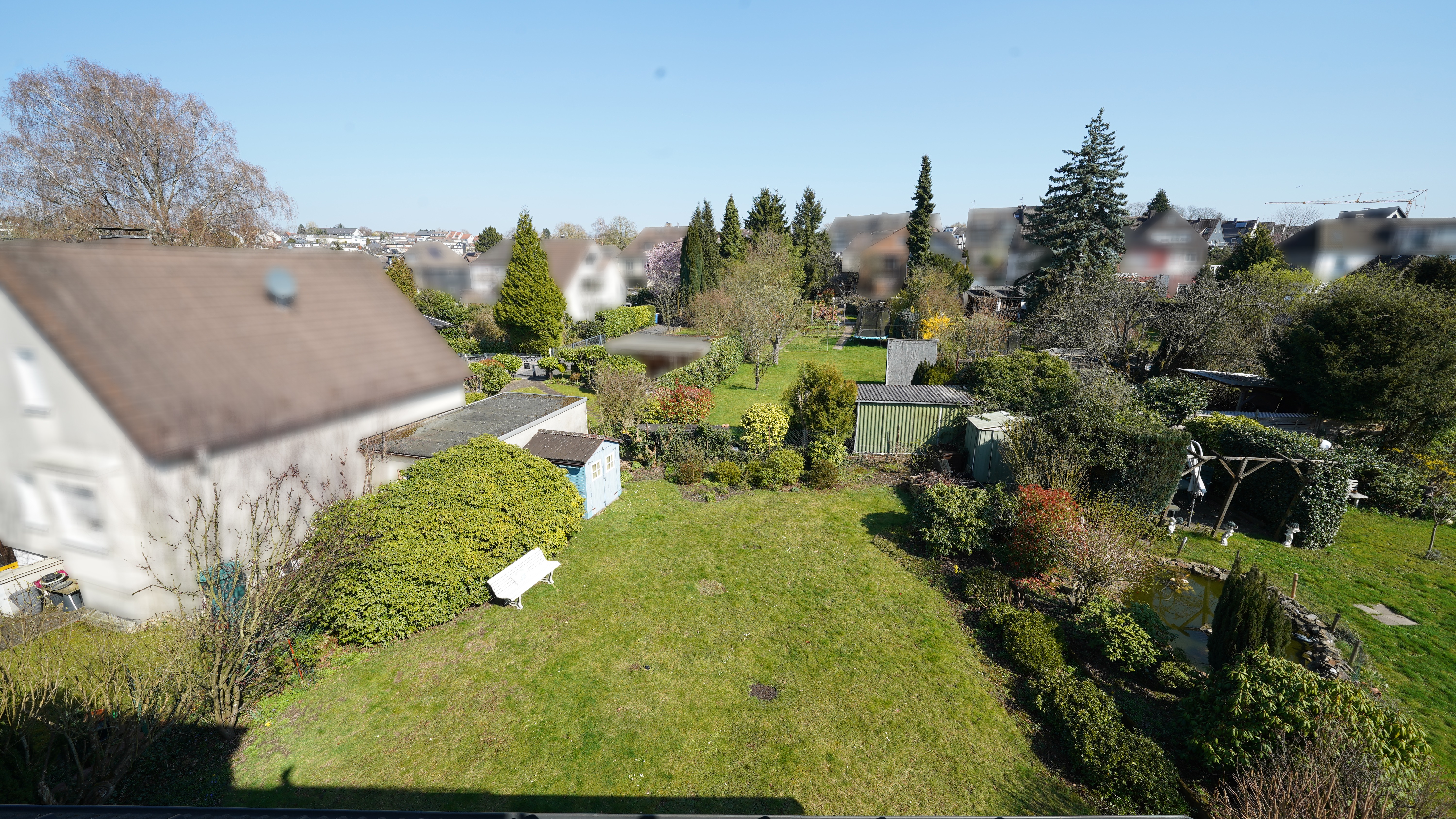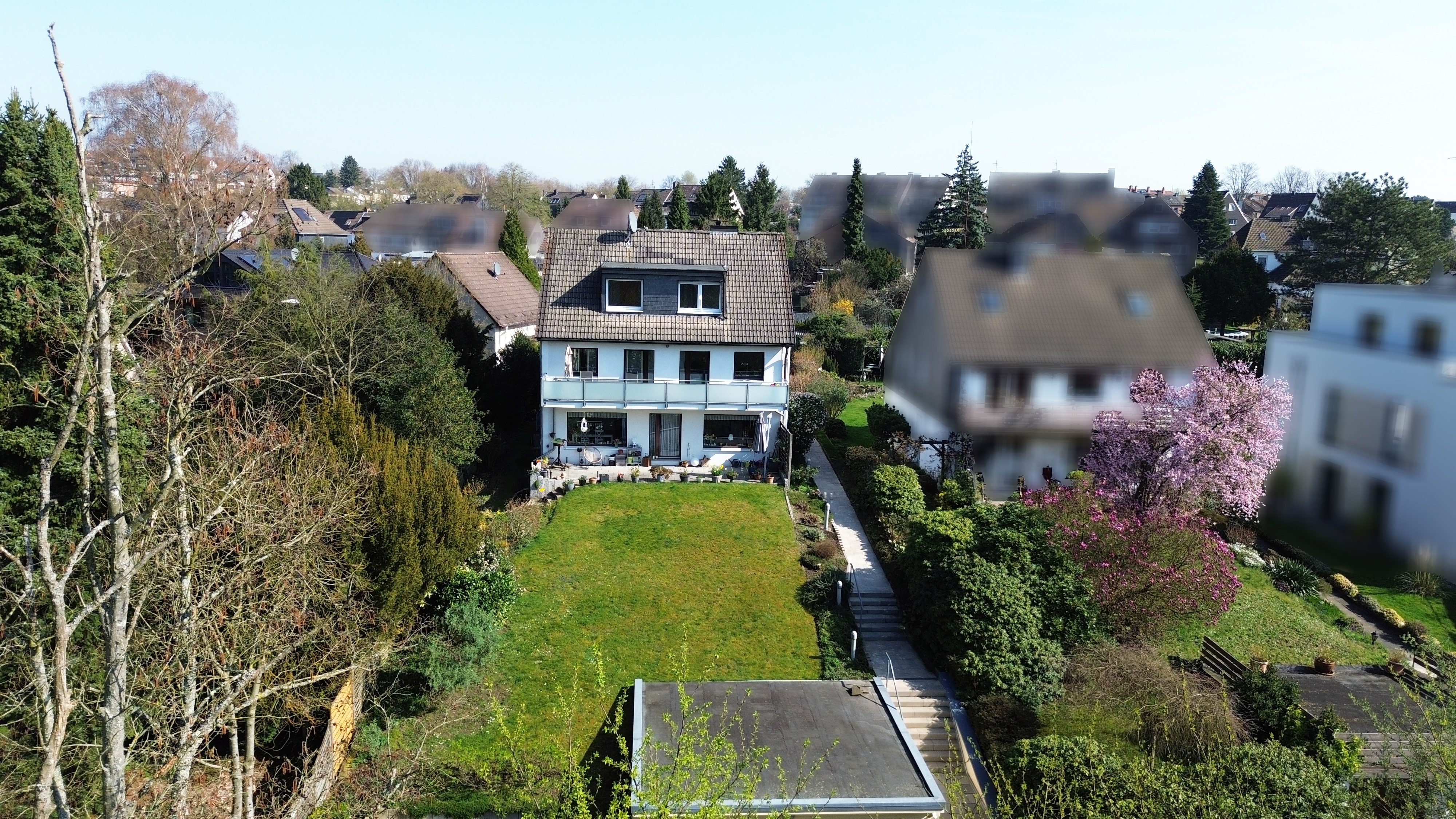 Der großzügige Garten sowie Balkon, Terrasse und Loggia bieten attraktive Außenflächen mit Blick ins Grüne und teilweise Richtung Baldeneysee.